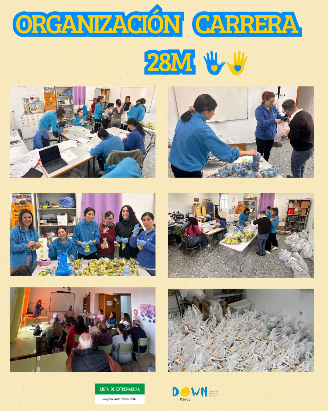 Últimos preparativos para la II Carrera Solidaria de Down Mérida: bolsas con los dorsales y las camisetas que recibirán los participantes.