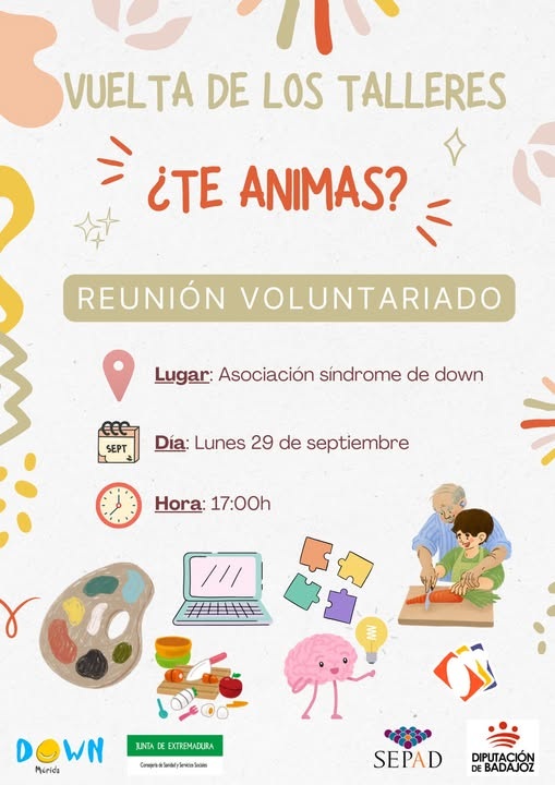 El próximo Lunes 29 de Septiembre tendrá lugar en la asociación una reunión informativa y organizativa sobre los talleres que se realizarán a partir de octubre.