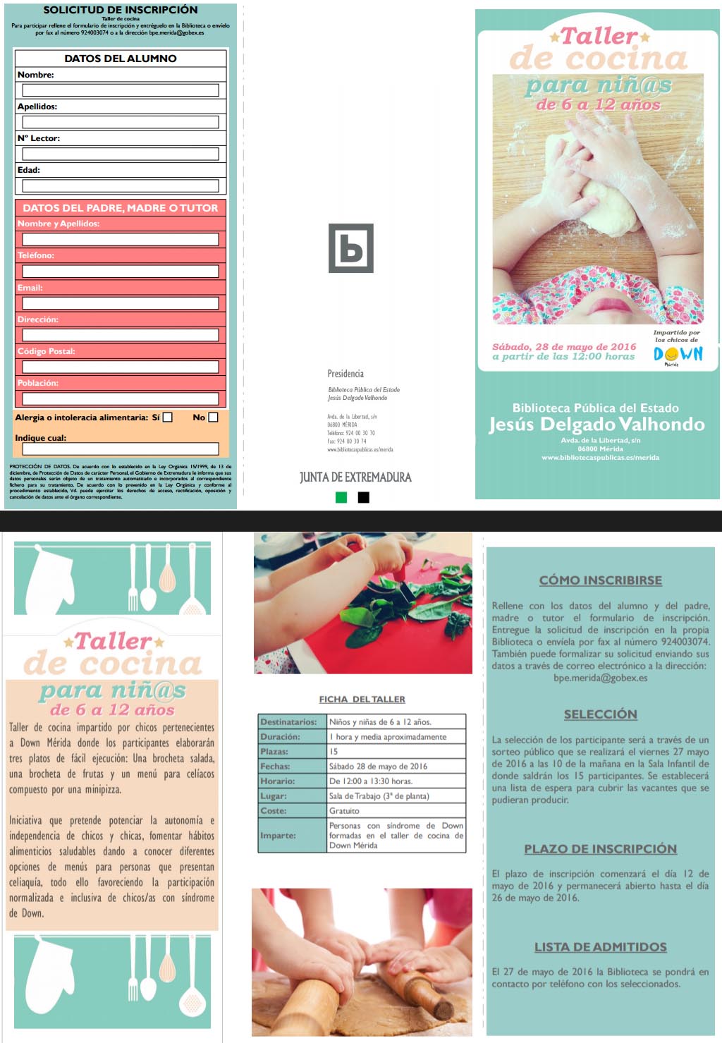 Taller de cocina impartidos por los chicos/as de Down-Mérida, donde se elaborarán tres platos de ejecución sencilla, como son brochetas y minipizzas. Iniciativa con la que se pretende potenciar autonomía e independencia, fomentar hábitos saludables de alimentación, así como la participación normalizada e inclusiva. Toda la información en el tríptico que adjuntamos a continuación.Os esperamos, ¡¡no faltéis!!