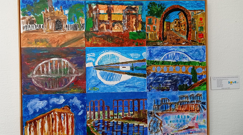 Down Mérida entrega al Consorcio de la Ciudad Monumental un óleo pintado por los alumnos del Taller de Pintura. Se trata de un collage cooperativo en el que aparecen gran parte de los monumentos de la ciudad. Estará visible en la galería porticada de la segunda planta en la sede del Consorcio.