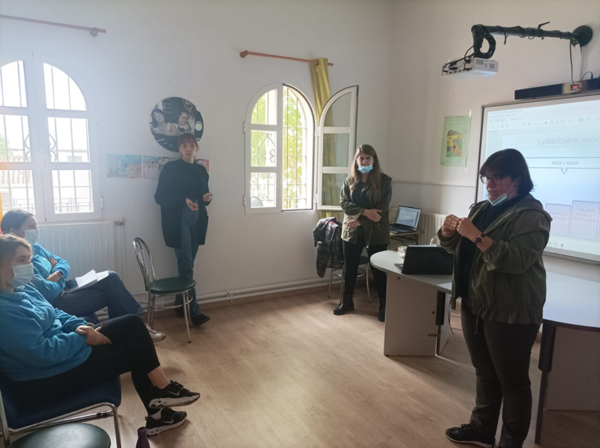 Dentro de la formación continua que recibimos los profesionales de Down Mérida hoy hemos tenido sesión de sensibilización por parte de la Asociación de Personas Sordas de Mérida para familiarizarnos con la Comunidad Sorda, la lengua de signos y otros recursos que pueden ser muy positivos en nuestro desempeño diario.