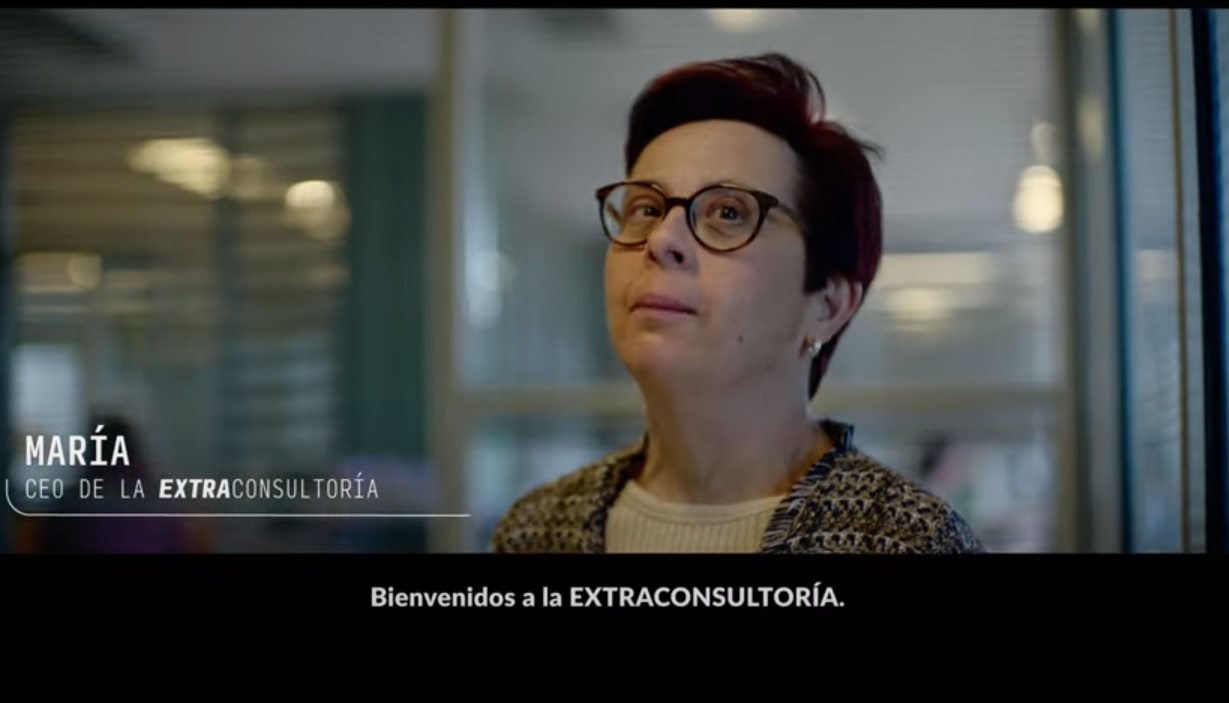 En nuestro spot, presentamos el trabajo de la ‘Extraconsultoría’, una consultora ficticia en la que trabajan personas con síndrome de Down asesorando a personas que no encuentran trabajo. Como explica Rosa, la CEO de esta peculiar empresa, las personas con síndrome de Down son expertas en el rechazo laboral, por lo que son los mejores consultores para este asunto.