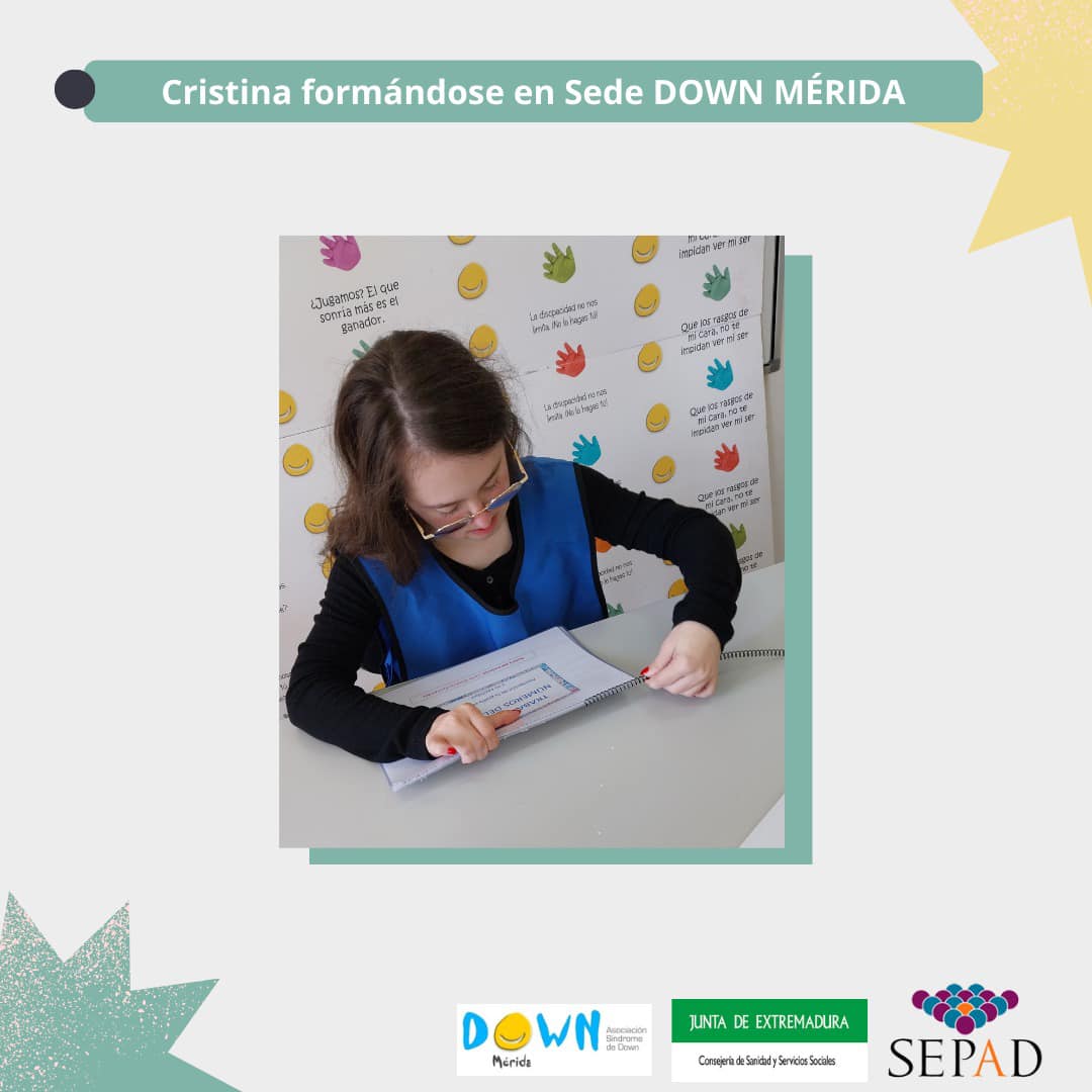 En estas fotos vemos a Cristina haciendo labores como encuadernar, plastificar, imprimir… gracias al proyecto de orientación e integración laboral!