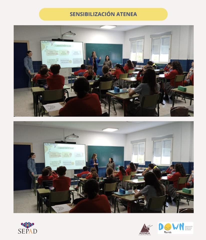 El día 8 fuimos a hacer una sensibilización al Colegio Atenea de Mérida sobre el Síndrome de Down a los alumnos de 1 de la Eso.