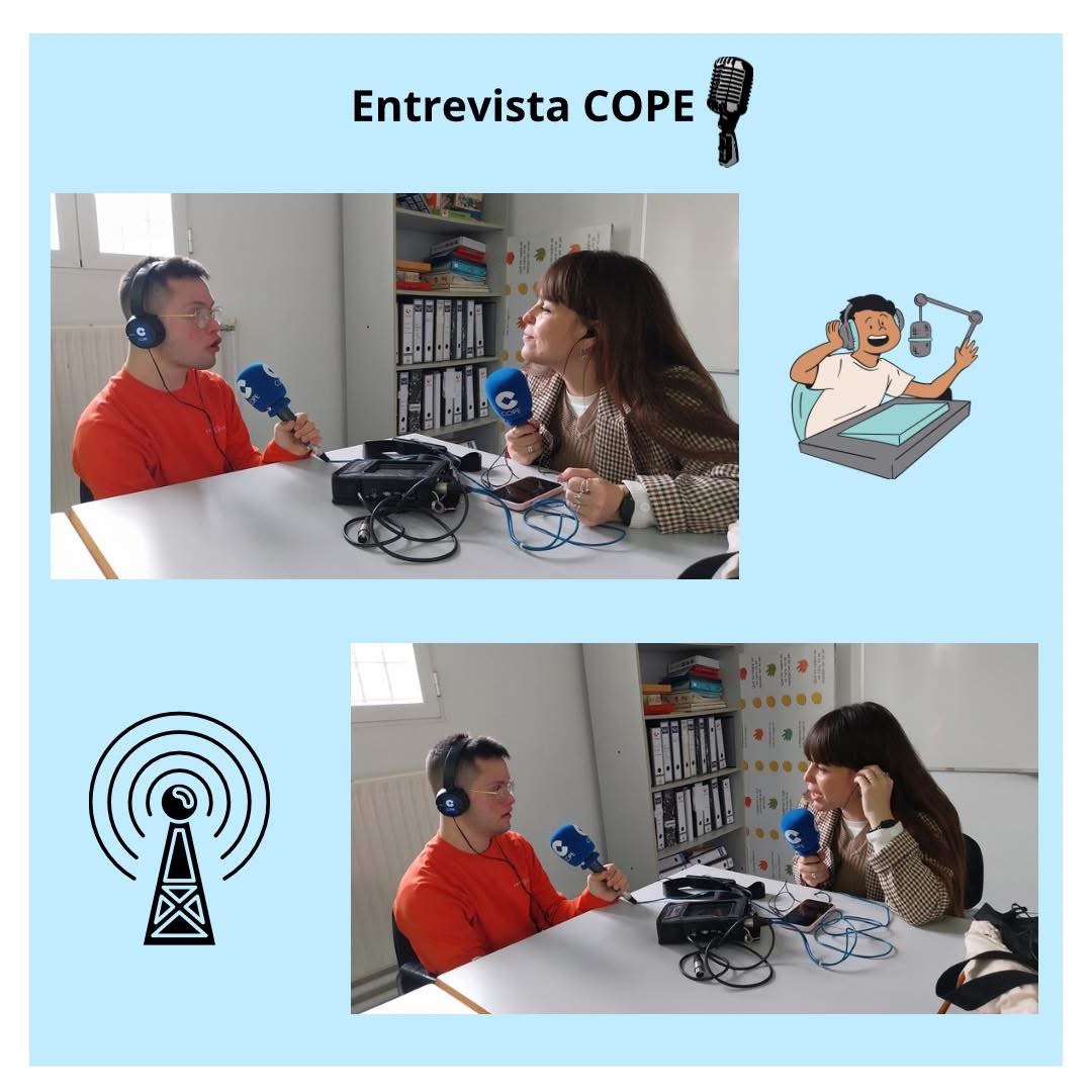 Ha venido a visitarnos la radio, en este caso @celialafuentelopez @cope_merida para entrevistar a Fernando y a Miguel dando visibilidad a la inserción laboral de las personas con Síndrome de Down.