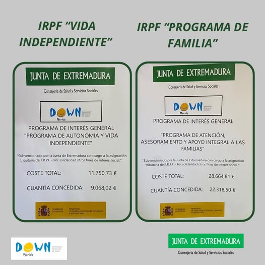 Aquí os dejamos la partida económica que nos da IRPF de dos de los programas que tenemos en activo en la asociación subvencionados por la Consejería de Salud y Servicios Sociales de la Junta de Extremadura: