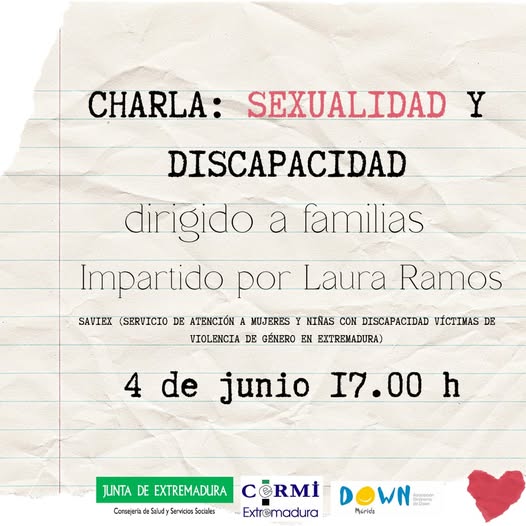 El próximo miércoles día 4 de junio a las 17:00, Laura Ramos impartirá de nuevo el taller de sexualidad y discapacidad dirigido a las familias. CERMI Extremadura