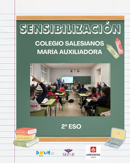 El viernes se realizó una sensibilización sobre el Síndrome de Down en el curso de 2º de ESO. Gracias a los Salesianos por dejarnos participar y sensibilizar con vuestro alumnado.